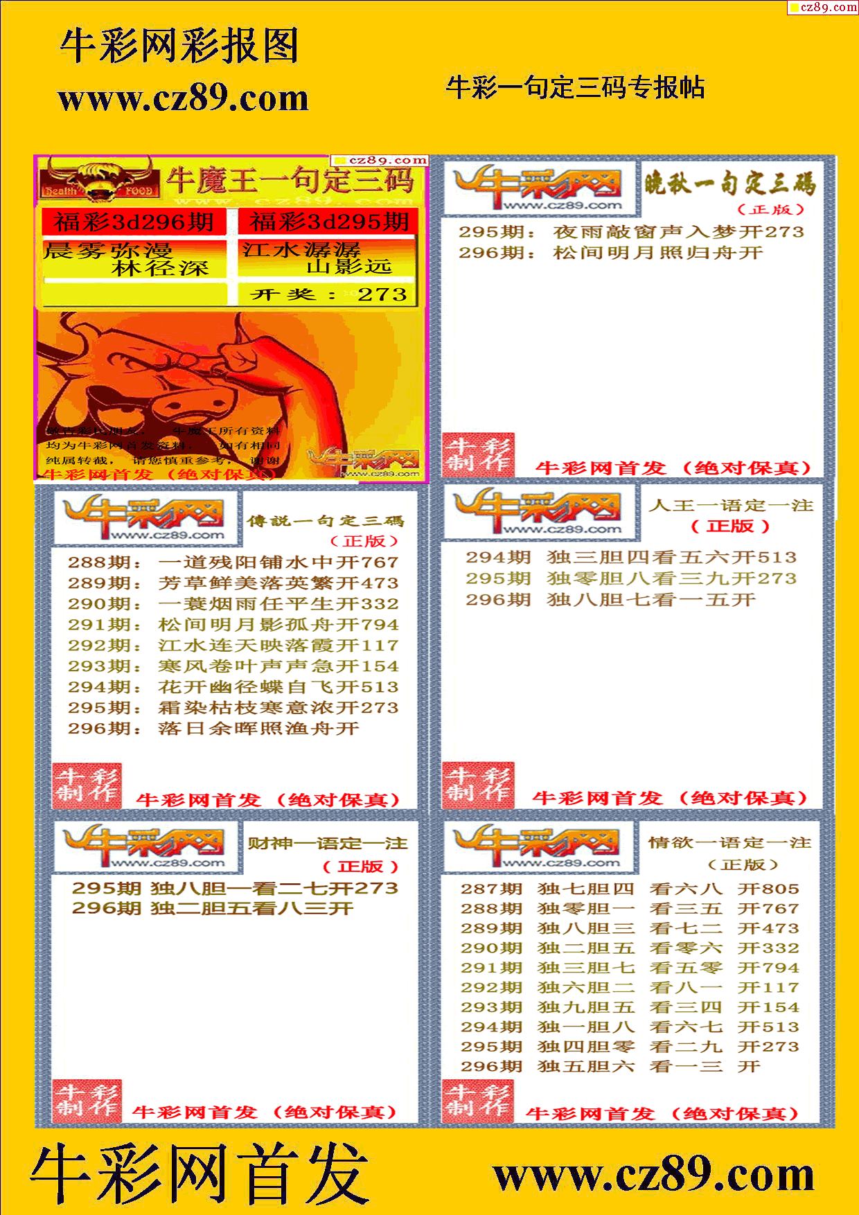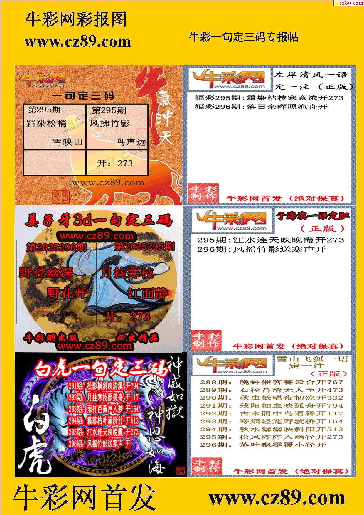 2025296期牛彩专家一句定三码彩报