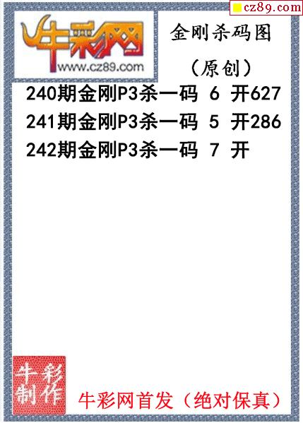 > 金刚杀码242期体彩P3图迷(原创)