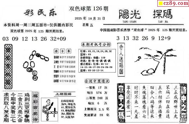 > 双色球2025126期 彩民乐+阳光探码图文版