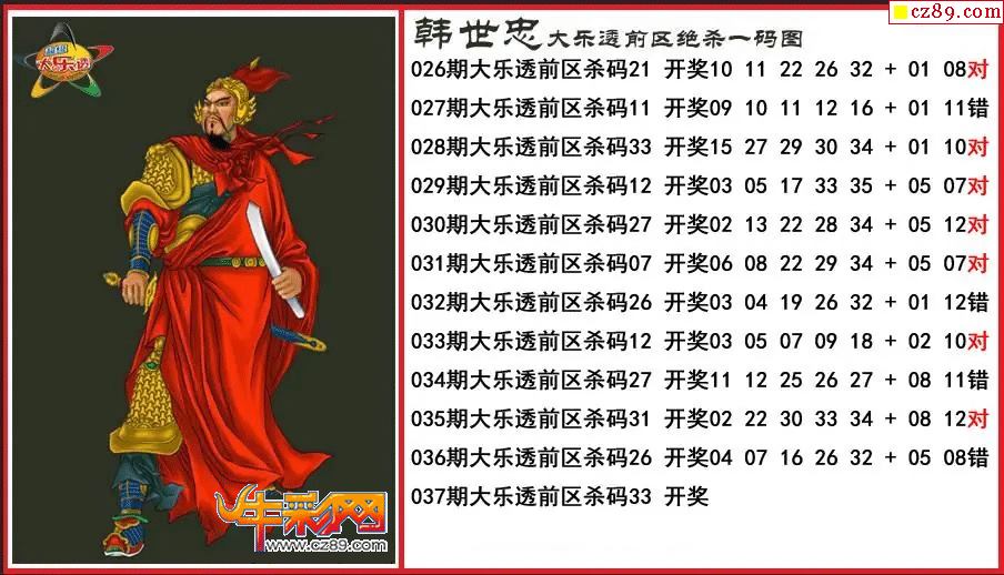 大乐透037期韩世忠前区绝杀一码图
